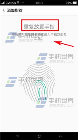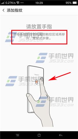 2)將想要錄制的手指至於背部指紋識別區域,多次按壓錄入。(如下圖)