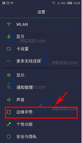 1)進入努比亞my布拉格的設置界面,點擊【邊緣手勢】,進入界面選擇【邊緣滑動】。(如下圖)