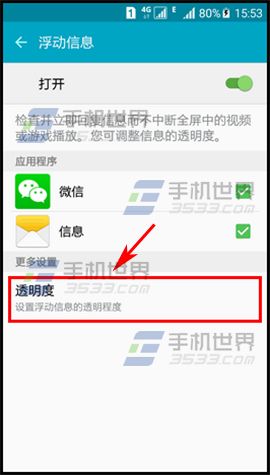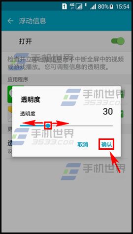 2)開啟浮動信息界面下的按鈕,點擊【透明度】,設置你需要顯示的透明度。(如下圖)