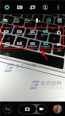 2)點擊【倒數第二個按鈕】,在這裡,就可以對拍照和錄像的默認分辨率進行設置了。(如下圖)