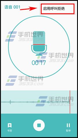 3)點擊【啟用呼叫拒絕】,錄音界面將顯示紅色的【拒絕】圖標。當對方撥打你的電話時,將提示“您撥打的電話正在通話中”。(如下圖)