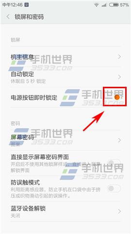 進入小米note的設置界面,找到並點擊【鎖屏和密碼】,在鎖屏一欄開啟【電源按鈕即時鎖定】右邊按鈕即可。(如下圖)