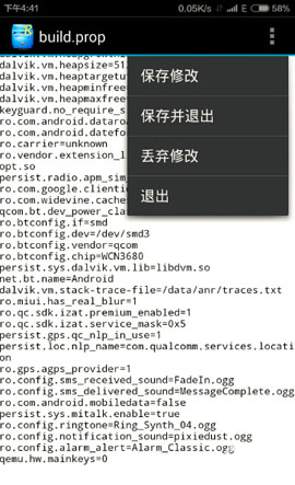 修改build.prop文件(關鍵)。直接拉到最後一行,添加一行:qemu.hw.mainkeys=0——點右上角的,修改保存並退出,英文為“save and exit”。