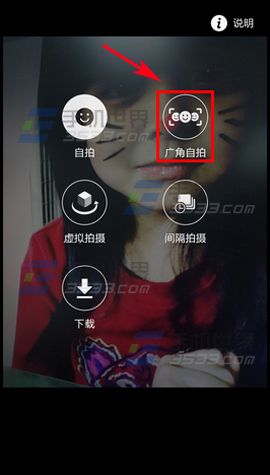 2)點擊【模式】,彈出選項後點擊【廣角自拍】。(如下圖)