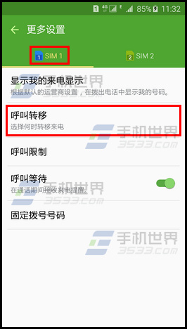4.選擇要設置呼叫轉移的SIM卡,這裡以選擇【SIM 1】為例,然後點擊【呼叫轉移】。