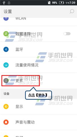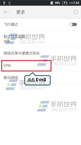 1)進入聯想S8暢玩版【設置】,選擇【更多】,點擊【VPN】。(如下圖)