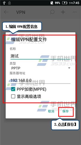 3)接著點擊【+】,編輯VPN配置信息後點擊【保存】即可。PS:服務器地址等相關信息請咨詢相關人員。(如下圖)