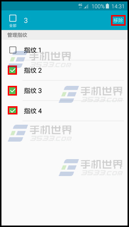7.將想要刪除的指紋勾選,然後點擊【移除】。