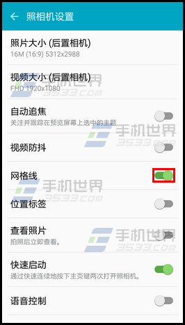 2)點擊【網格線】右側滑塊,綠色代表開啟。(如下圖)