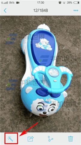 1)打開vivo Xshot【圖庫】中以拍好的照片,點擊【美化】按鈕,左劃找到【背景虛化】。(如下圖)