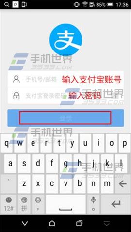 4)輸入支付寶帳號及密碼並【登錄】,開啟【指紋密碼】。(如下圖)