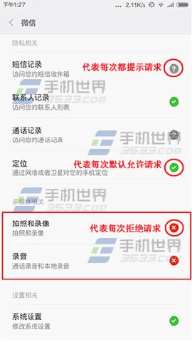 2)找到並點擊要修改的應用,【?】為每次提示,【X】為拒絕請求。(如下圖)