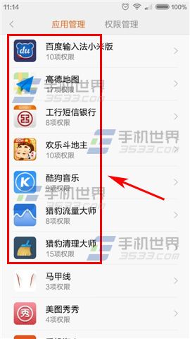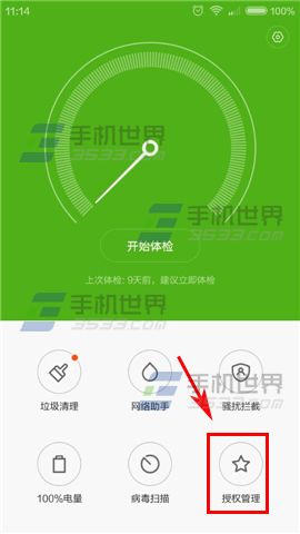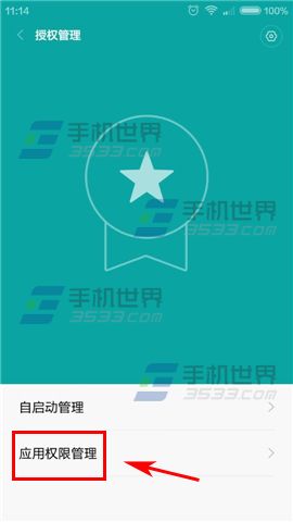 1)打開小米Note【安全中心】點擊【授權管理】,點擊【應用權限管理】。(如下圖)