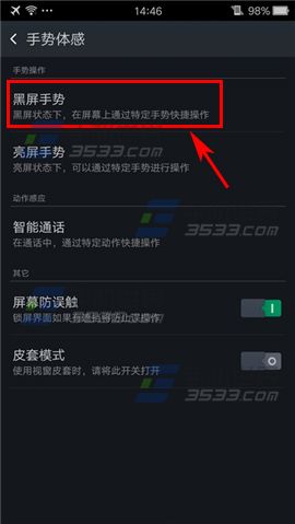 1)打開OPPO R7的【設置】,在【常規】欄選擇【手勢體感】,點擊【黑屏手勢】;(如下圖)