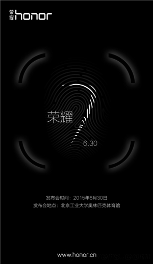 華為宣布,6月30日將在北京工業大學奧林匹克體育館正式發布榮耀7,雖說沒有更多的備注,但配圖中的指紋無疑是在暗示我們,這款手機具備指紋識別功能,這讓人很是期待。