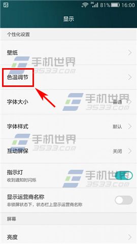 1)打開華為Mate7的【設置】,在【全部設置】欄選擇【顯示】,點擊【色溫調節】;(如下圖)