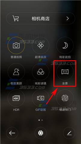 很簡單,打開OPPO R7的【相機】,點擊右下角的【五顏六色圖標】,然後點擊【全景】即可進入到全景模式了。(如下圖)