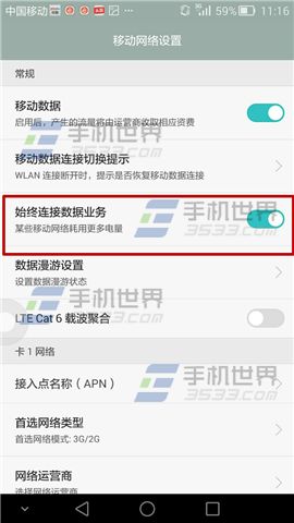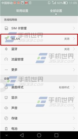 2)開啟【始終連接數據業務】選項,這樣手機網絡就不會斷開了,要解決WiFi斷開的問題就接著往下看,在【全部設置】欄點擊【WLAN】;(如下圖)