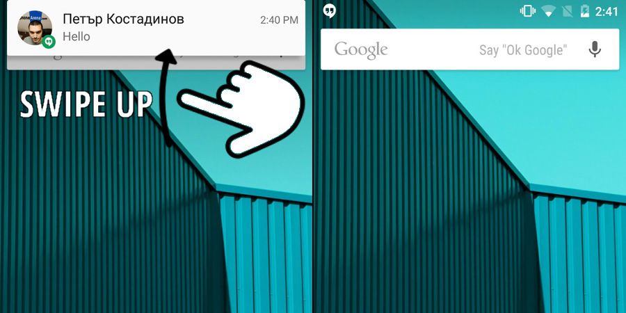 在 Android 5.1 中,有信息通知時,用戶可以向上滑動,不查看信息,但信息依然保留在通知欄中。在此之前,用戶只能選擇向左或者向右掃滑,不讓信息出現在通知欄中。