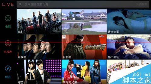 Live桌面左側依次排列著“我的”、“直播”“明星”“衛視”“體育”“電影”“電視劇”“綜藝”“動漫”“音樂”“綜合”“紀錄片”“娛樂”等子菜單,屏幕上可同時顯示9個直播頻道的內容,按照樂視在發布會上的介紹,它能夠同時播放3個直播視頻流,這種功能的實現得益於樂視雲計算遍布全球的超過400個CDN節點和6Tbps出口帶寬。