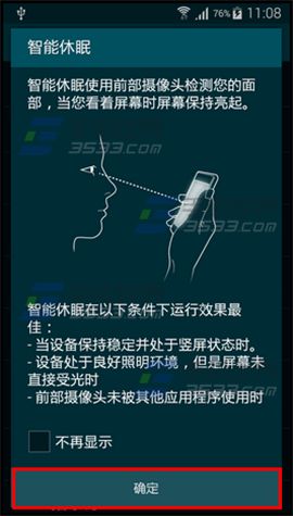 2)閱讀彈出的使用說明,點擊【確定】就可以開啟【智能休眠】功能了。(如下圖)
