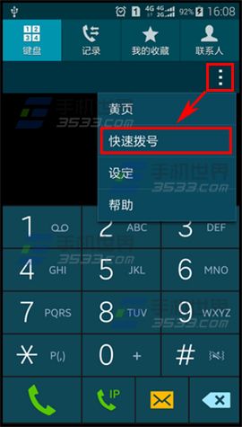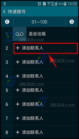 1)打開三星S6的撥號界面,點擊右上角【...】,選擇【快速撥號】,選擇一個號碼,比如【2】,點擊【+添加聯系人】;(如下圖)