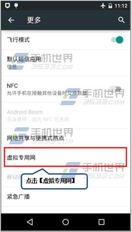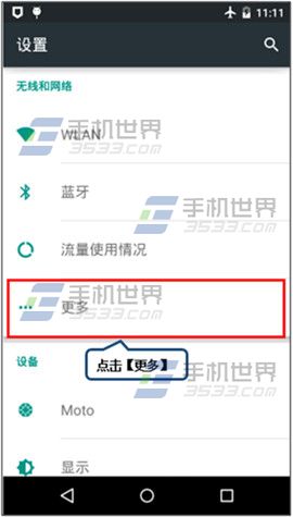1)打開Moto G的手機【設置】,點擊【更多】,點擊【虛擬專用網】。(如下圖)