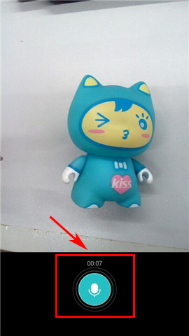 2)進入後再點擊紅色邊框內的【圓圈】拍照,拍完照自動錄音,最多可錄制10秒聲音,也可以點擊【藍色圓圈】提前結束。(如下圖)
