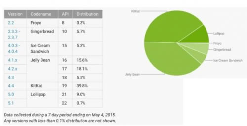不過,隨著最新系列的旗艦手機,像三星S6、HTC One M9等的上市,Android5.0/5.1市場份額或許會大幅度提升。