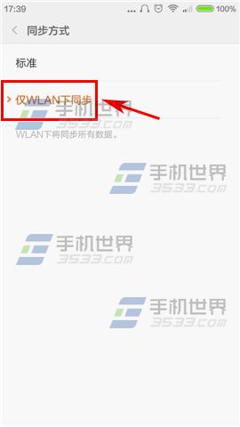 3)在【同步方式】上點擊進入,然後再點擊【僅WiFi下同步】即可。(如下圖)