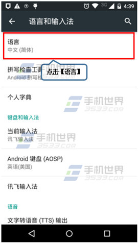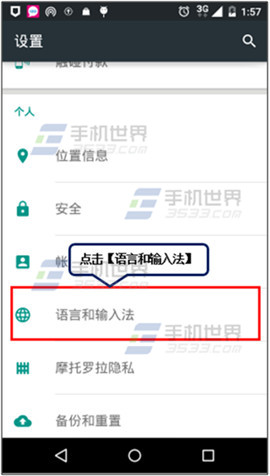 1)你可以打開Moto X Pro【設置】,點擊【語言和輸入法】。(如下圖)