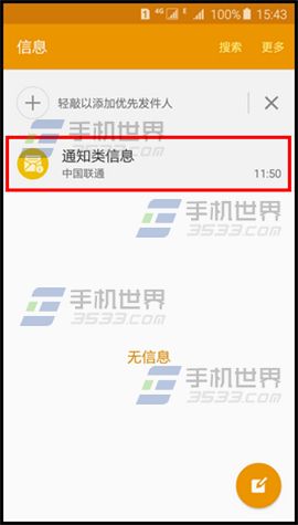 1)在待機頁面下,點擊【信息】,點擊【通知類信息】;(如下圖)