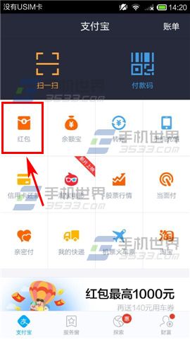 1)打開支付寶,點擊【紅包】入口,接著點擊【群紅包】按鈕。(如下圖)