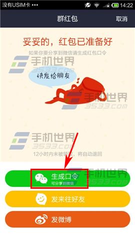 3)此時點擊【生成口令】,系統就會生成帶有數字的口令紅包啦,點擊背景圖片右上角的【設置個性背景】字樣。(如下圖)