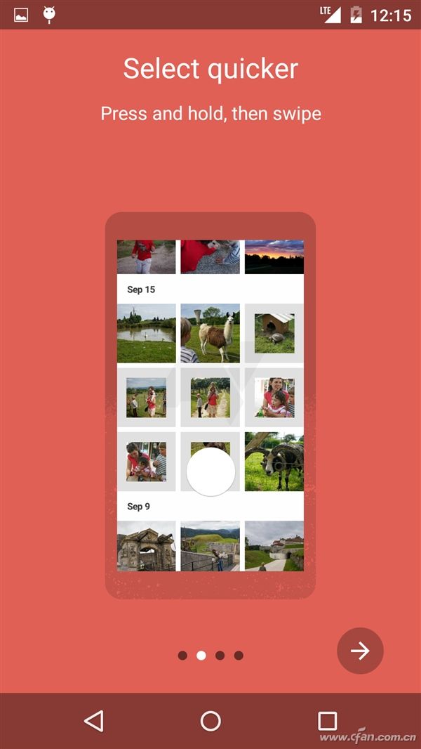 隨著今年的Google I/O大會即將開幕,有關新一代Android操作系統的細節也開始逐步被曝光。外媒體SlashGear今天分享了Android M全新圖庫應用的首批截圖。 我們可以看到更加簡潔的UI設計以及便捷的編輯助手功能。同時,Android M的照片管理應用還加入了數種新的操作手勢和管理分類方式,比如觸摸拖動來選中多個圖片以及按日期或通過人臉匹配來歸類照片等等。