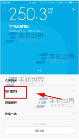 打開小米Note【安全中心】,找到並點擊【聯網控制】,根據所需控制聯網應用就行。PS:一般控制【數據】流量即可。(如睛圖)