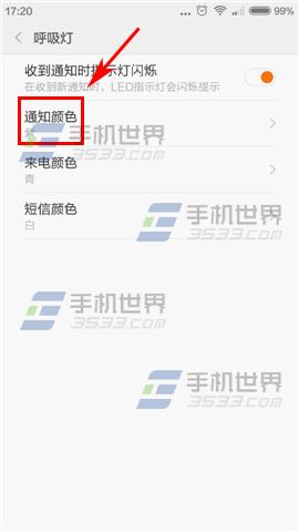3)進入後有通知和來電以及短信的呼吸燈顏色,我就拿【通知顏色】舉例。