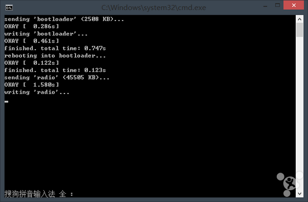 1、刷入bootloader、radio(如果有),命令如下: