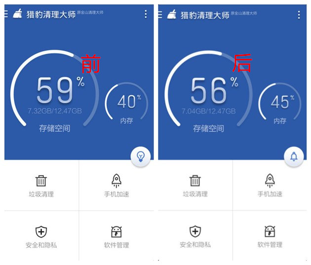 7.清理前後手機內存空間對比