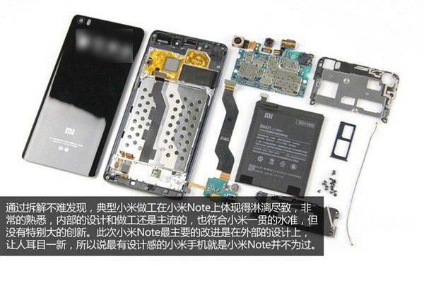 小米Note采用雙面玻璃機身、結合金屬邊框,機身表面看不到一顆固定螺絲,外觀設計是歷代小米手機中最漂亮的。也正因為如此,小米Note電池也無法自行拆卸,除非是拆機。不過這種設計的手機,拆機向來難度比較大,因此如果是非專業人士或者沒有相關拆機經驗的用戶,請勿擅自拆機,否則可能會損壞小米Note。本文也不是鼓勵大家拆機,只是與大家探討一下小米Note拆機細節以及注意事項,僅供參考。