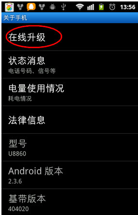 方法二:1、主動獲取系統升級信息,選擇手機設置→關於手機→在線升級