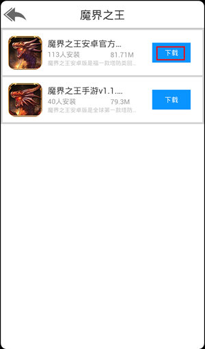 搜索到了軟件魔界之王之後,點擊軟件下載,如圖: