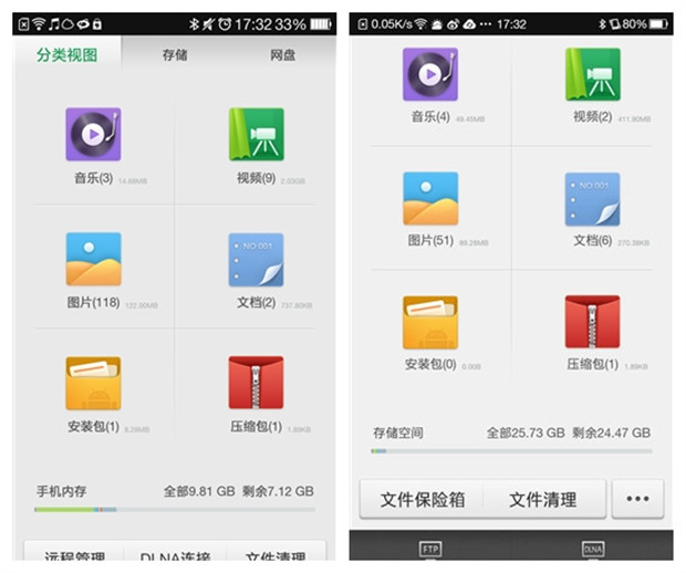 注意兩幅圖的右下角,OPPO N3搭載的Color OS 2.0已經徹底取消了“應用程序界面”,所有應用直接擺在桌面上,同時可以看到,像“電話本”“軟件商店”“音樂”等系統圖標得以重新繪制,相比先前更為簡潔舒爽。