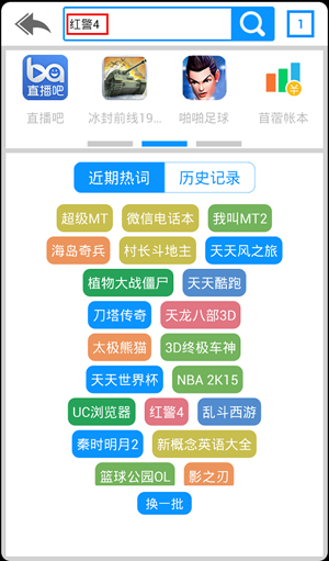 在搜索界面中,快速輸入【紅警4】,對軟件進行搜索,如圖: