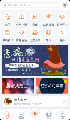 下載、安裝完成軟件之後,就可以打開喜馬拉雅聽書了,如圖: