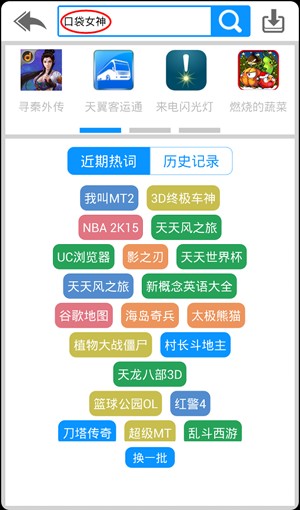 進入搜索界面之後,在搜索界面中輸入【口袋女神】這款軟件,對軟件進行搜索,如圖: