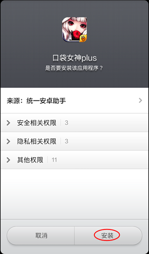以上就是小編關於安卓手機如何利用統一安卓助手快速下載安裝口袋女神的方法介紹,就暫時和大家介紹到這邊了,後續小編有什麼好的方法也會在和大家一起分享的。