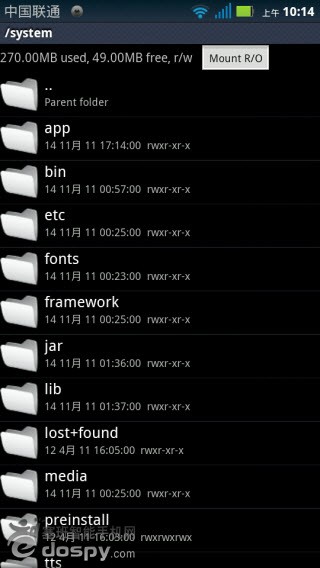 剛才所舉的手機默認的權限只是用來入門的,沒有什麼實際的價值,下面進入實戰階段,讓我們看看system目錄的文件夾,每一個文件夾的權限都是這樣的: