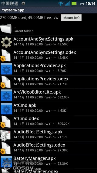 ▲左為Windows上的文件在Android系統裡的默認權限,右為文件列表裡顯示的權限