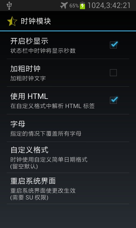 不知怎麼回事,變成了12小時制了,不知道是不是格式不對呢,還請有知道的大神指出。另外界面模塊裡面的其他功能我就不一一說明了,大家可以自己試試吧,應該都可以用,沒什麼問題。建議可以把系統動畫裡面的動畫控件都打開,然後動畫時長稍微調短點(以免感覺手機反應變慢了),以後玩手機的時候動畫就不像以前那樣單調啦!